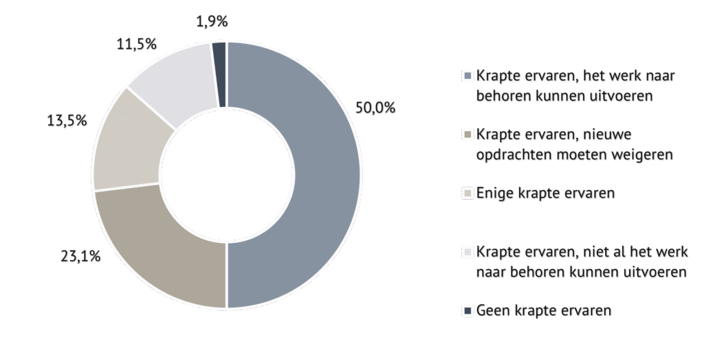 Figuur 4: reactie op de vraag of respondenten last hadden van de krapte op de arbeidsmarkt (in %)